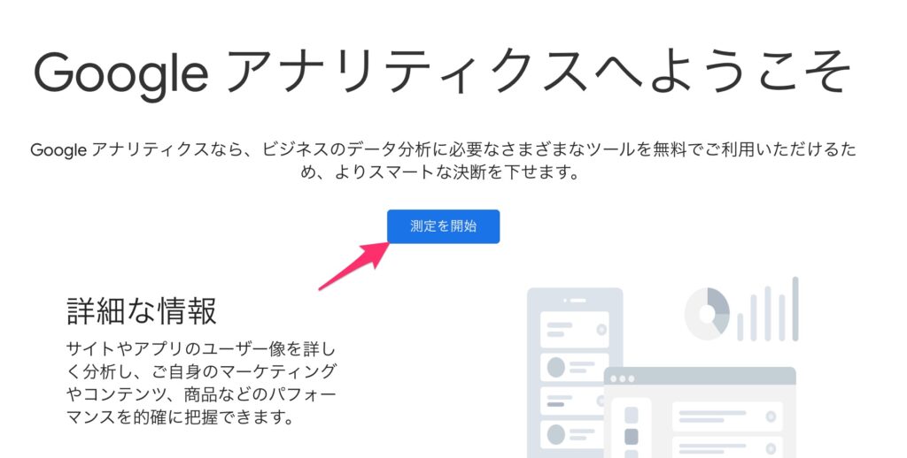 次の画面を開きますので「測定を開始」からアカウントを開設をしましょう。