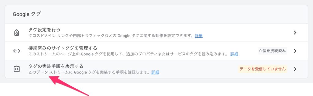 クリックした先の画面の一番したに「タグの実装手順を表示する」をクリックします。
