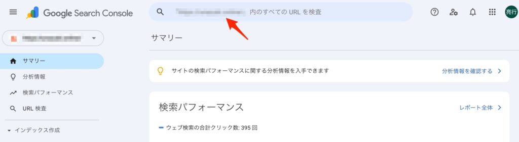 まず現在のインデックス状況を検査するには、検索フォームにURLを入力します。