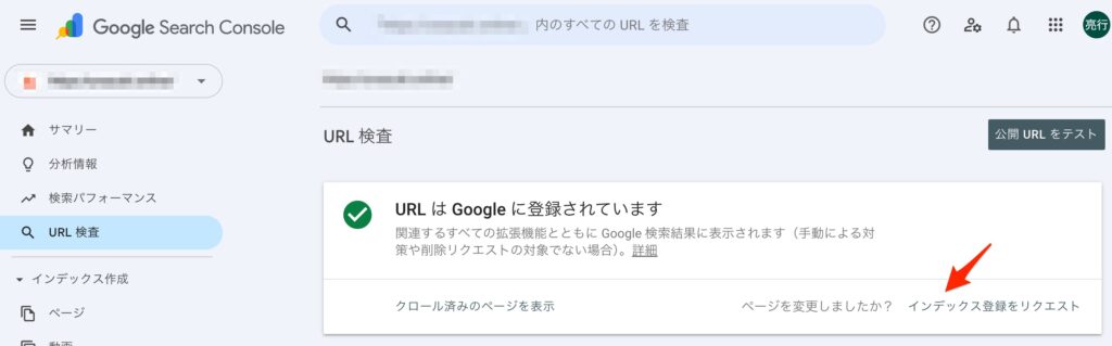 - インデックスリクエスト(URLの登録申請)