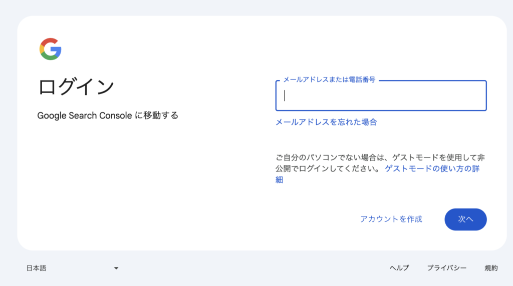 まずはサーチコンソールのURLにアクセスします。