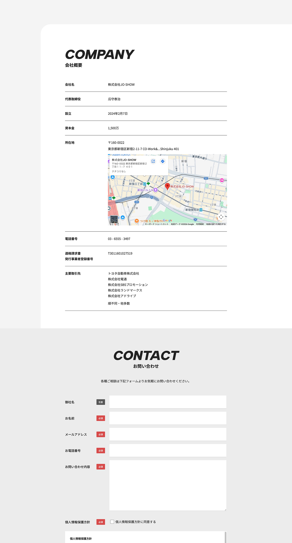 シンプルな構成にしつつ会社としての信頼度を獲得できるようなーポレートサイト