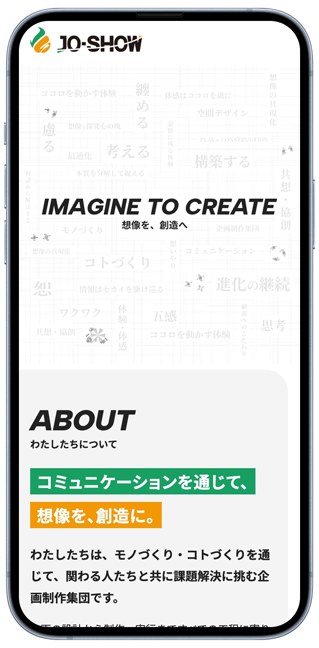 演出の一つとして、メインビジュアルにキャッチーな言葉を並べてアニメーションするデザインを採用しました。