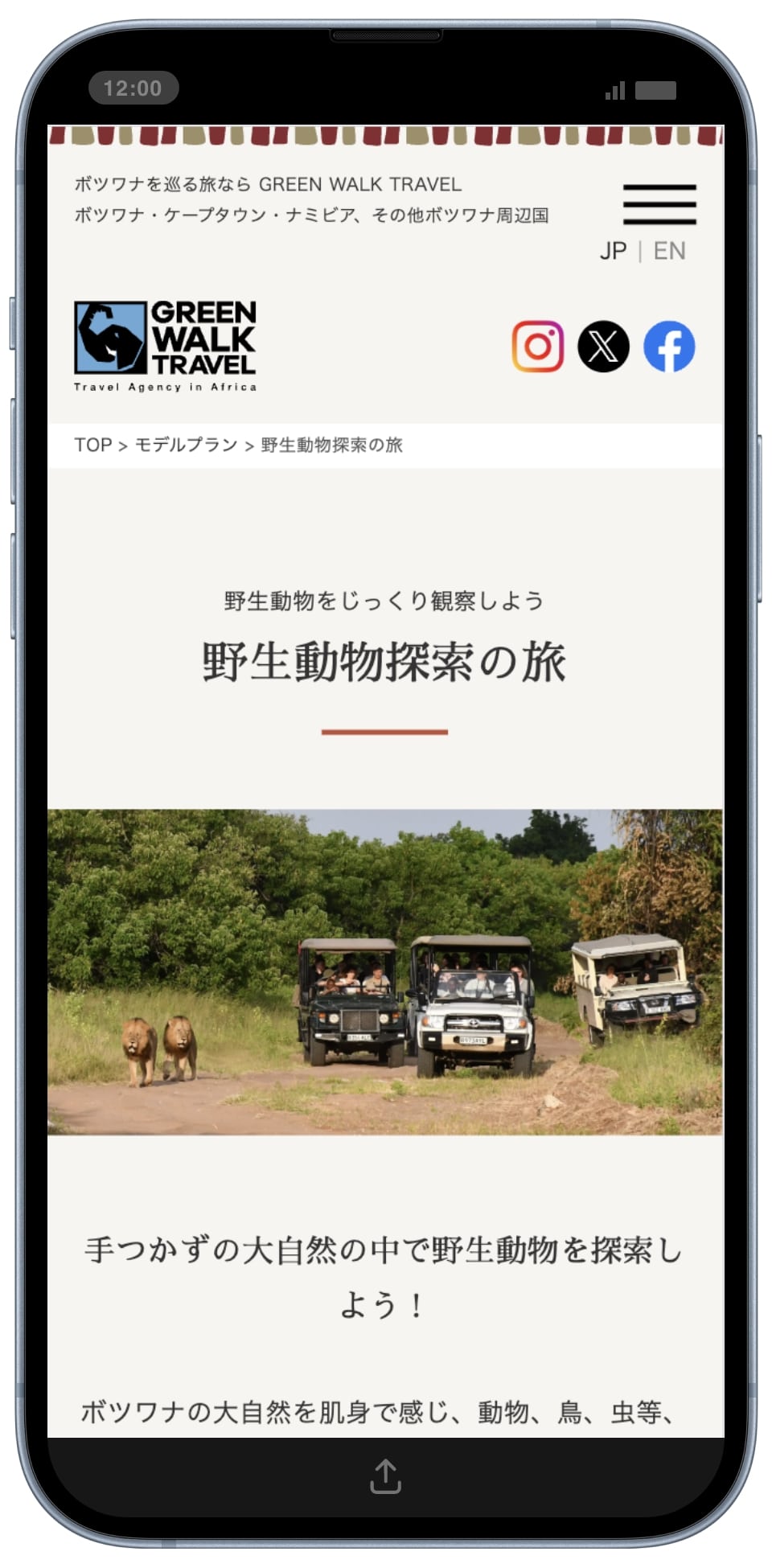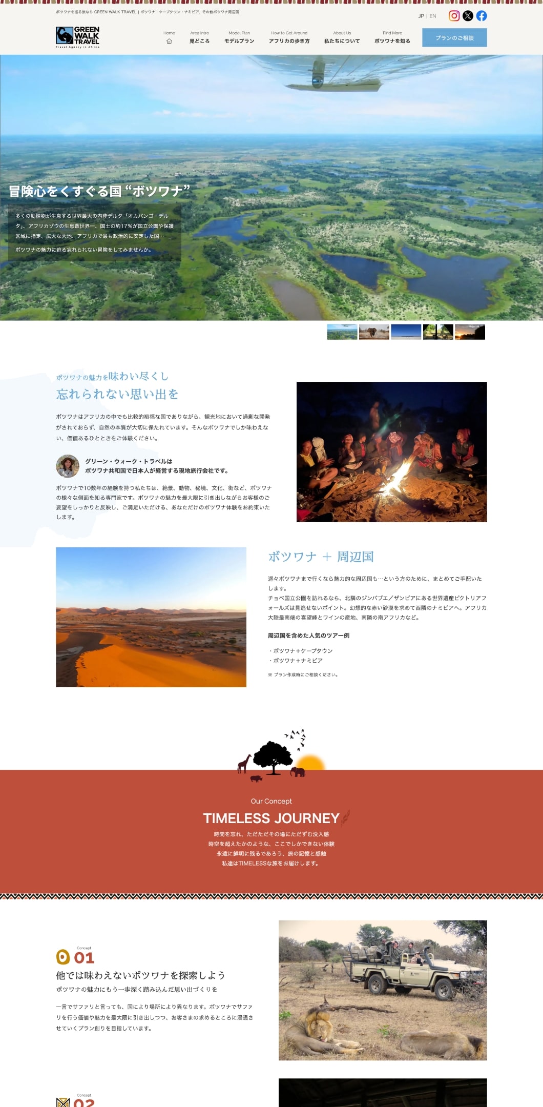単なる観光情報サイトではなく、ボツワナ旅行のオーダーメイドプランとしての価値をより魅力的に訴求するためのコンセプト設計・再構築